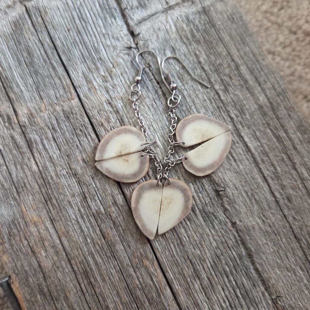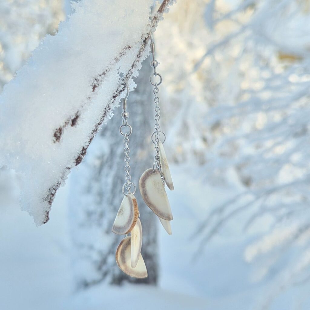 Jos ystäväsi rakastaa koruja, jotka ovat näyttäviä ja pitkiä, Puolikas-korvakorut ovat loistava valinta. Niihin piirtyy ihanasti luonnon omia kuvioita. Poronsarven väritys tekee jokaisesta parista hieman erilaisen, joten lahja on aina yksilöllinen. Koru on kasattu poronsarvesta käsintehdyistä sydämenpuolikkaan muotoisista osista ja siksi se on ihana lahjaidea rakkaalle.